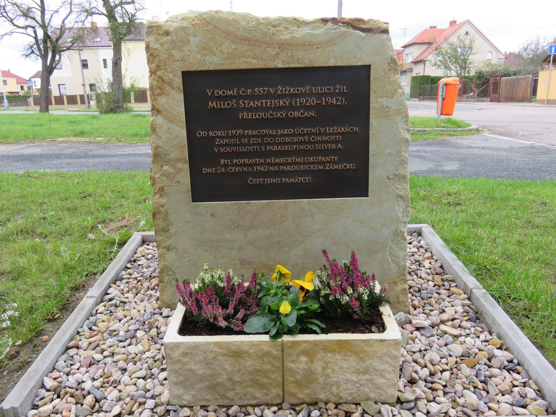 V Přelouči se nachází taktéž pomník obětem nacistického režimu z řad občanů města a také pomník zvláště věnovaný Miloši Stantejskému, který byl v červnu 1942 popraven na pardubickém Zámečku za spolupráci s paradesantní skupinou Silver A. [4] Tento pomník je umístěn v blízkosti domu, kde Miloš Stantejský žil.