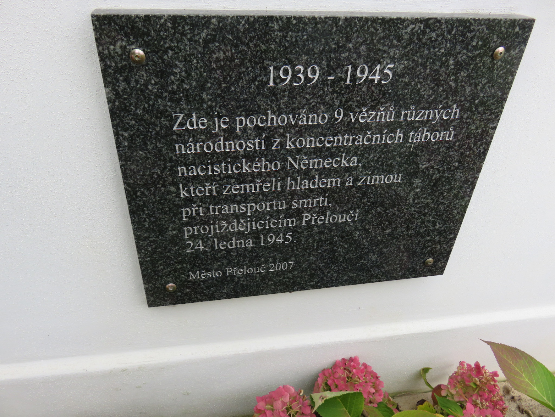 Ve stanici Přelouč bylo 24. ledna 1945 při průjezdu dvou železničních transportů vypravených z KT Auschwitz zanecháno 10 mrtvých vězňů. Devět z nich bylo pohřbeno na katolickém hřbitově. [1] Jejich hrob označuje pamětní deska města Přelouče instalovaná roku 2007. [2] Desátá oběť je pohřbena na evangelickém hřbitově. [3]