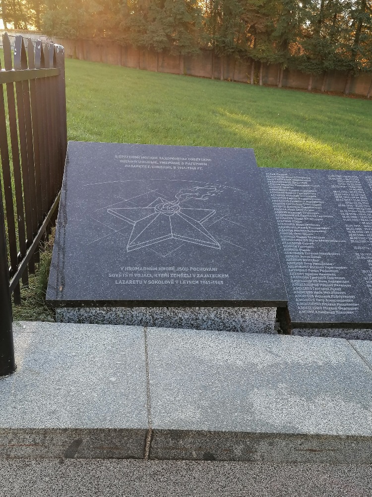 V bezprostřední blízkosti sokolovského městského hřbitova se nachází hromadný hrob sovětských vojáků, [1] kteří zahynuli ve falknovském (Falkenau je dnešní Sokolov) lazaretu pro válečné zajatce. [2] Mezi nejčastější příčiny jejich úmrtí patřilo celkové vyčerpání organismu a tuberkulóza. Podařilo se prokázat, že je zde pochováno 2 435 obětí. [3]